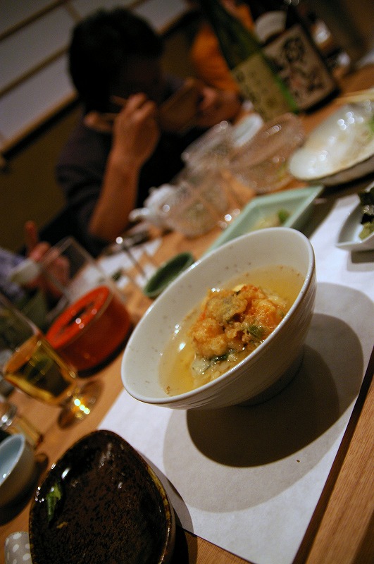 ちなみに真ん中のゼリーは出汁を固めたもので、ほんのり柚子(だったかカボスだったかダイダイだったか・・・)の香りがします。